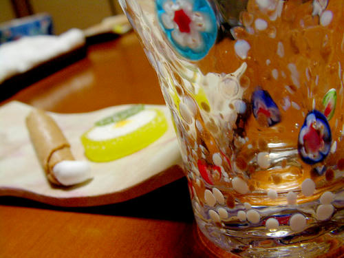 写真はそこでいただいた、甘~い和菓子。一緒に抹茶もいただきました。グラスもステキでしょ。